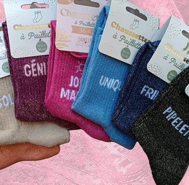 La boutique en ligne où les chaussettes brillent autant que ta personnalité ! 💫 Que tu cherches des paillettes discrètes ou un vrai feu d’artifice aux pieds, on a ce qu’il te faut.